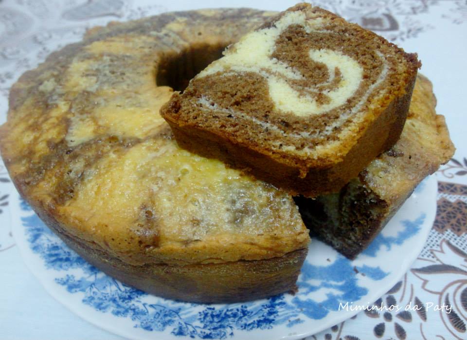 Barre muito bem uma forma com margarina e polvilhe com farinha e, deite os dois preparados em camadas alternadas.