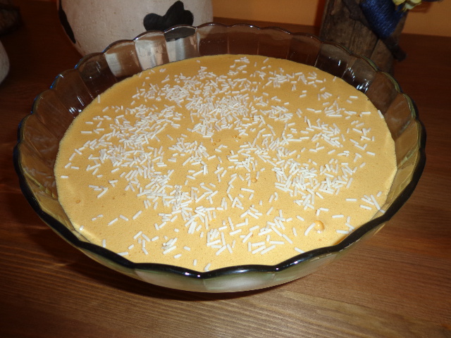 Misture as gemas com o leite condensado. Junte as folhas de gelatina e envolva bem.