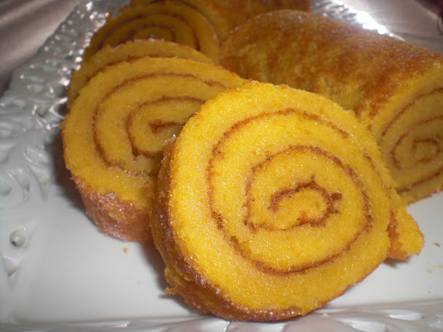 À parte estende-se um pano polvilhado com açúcar na qual se deita a torta saída do forno, descola-se o papel vegetal e enrola-se com a ajuda do pano, deixa-se arrefecer ligeiramente e passa-se para o prato.