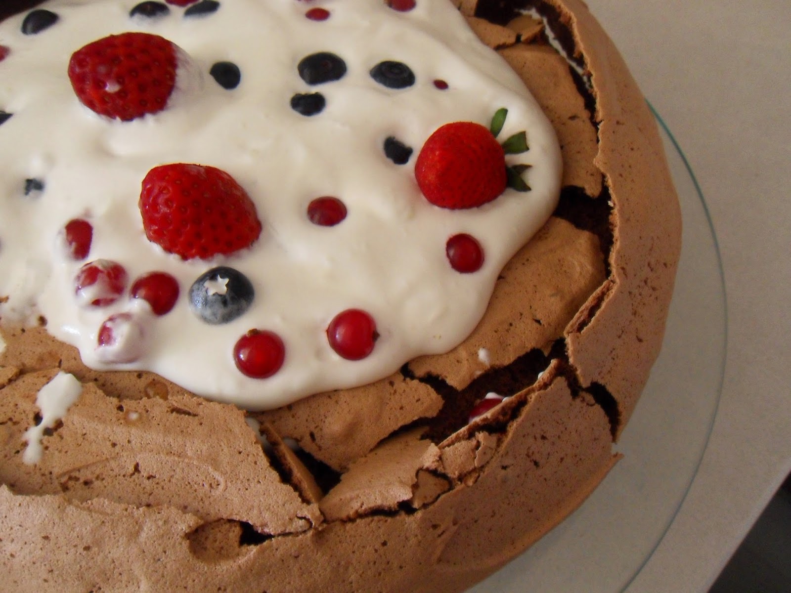 14. Coloque as natas por cima da Pavlova e decore com fruta a seu gosto.