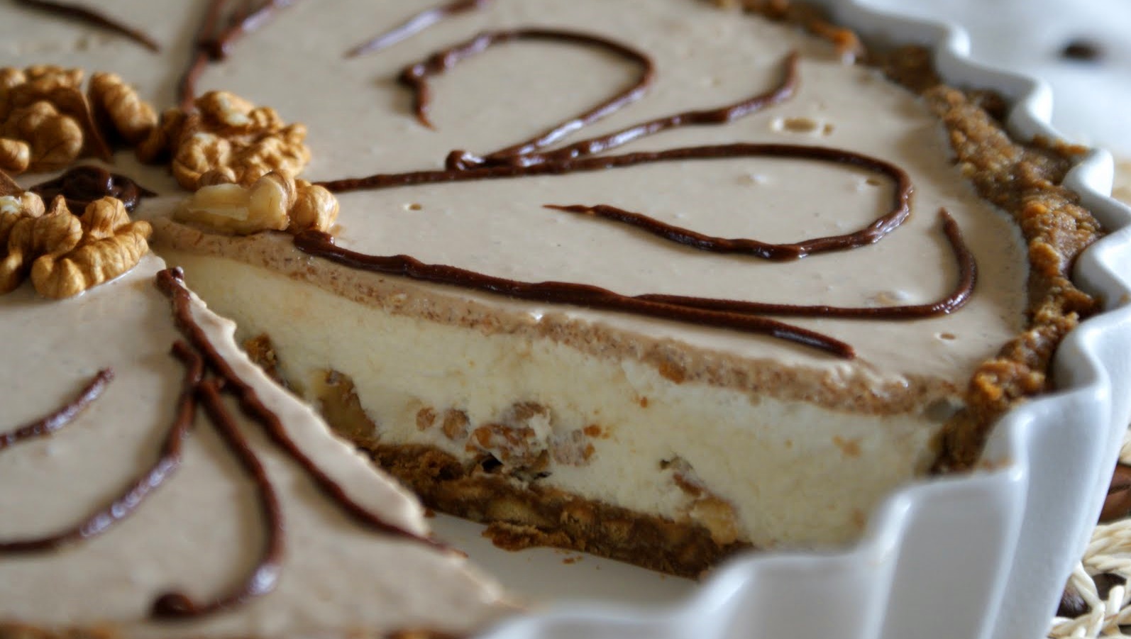 Triture as bolachas integrais até ficarem tipo pão ralado, deite para uma tigela, junte a margarina amolecida e o caramelo líquido e misture bem. Deite numa forma de abrir, espalhe, pressione com uma colher e leve ao frio.