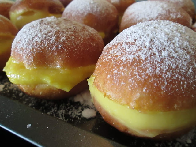 Prepare o creme: Ferva 2,5 dl de leite com metade do açúcar e a casca de limão. Misture o restante açúcar com a farinha e a maisena. Junte o restante leite, que reservou frio, e misture. Acrescente as gemas ao creme anterior e misture bem.