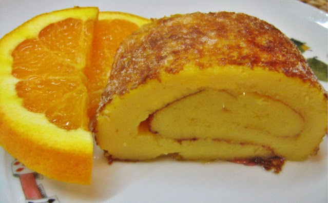 Espalhar o açúcar pilé sobre um pano e deitar sobre ele a torta. Retirar o papel vegetal e enrolar com a ajuda do pano.