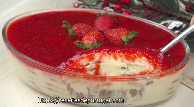 Triture os morangos e leve ao lume com o açúcar, deixando reduzir um pouco. Reserve.