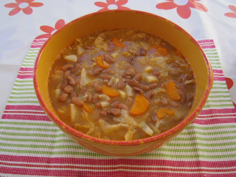 Ponha o feijão de molho de véspera. No dia seguinte coza o feijão com água temperada de sal e um fiozinho de azeite (Na panela de pressão, durante 18 minutos). Depois do feijão cozido, coloque a água da cozedura numa panela, junte o azeite, a cebola e os dentes de alho picados, as cenouras e o alho francês cortados às rodelas, o tomate, a abóbora e o nabo cortados em cubinhos, a couve cortada em juliana grada.