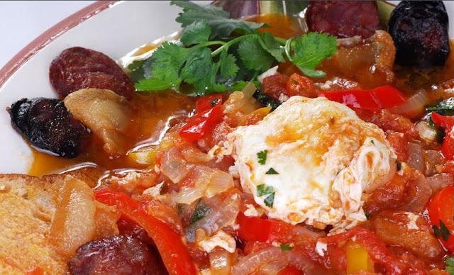 (Pode substituir os coentros por poejo, ou juntar o poejo e os coentros, se preferir os ovos podem ser escalfados)
