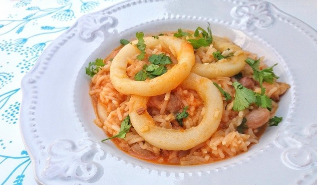 7. Apague o lume, junte os coentros, mexa e deixe o arroz repousar mais 2 ou 3 minutos e sirva.